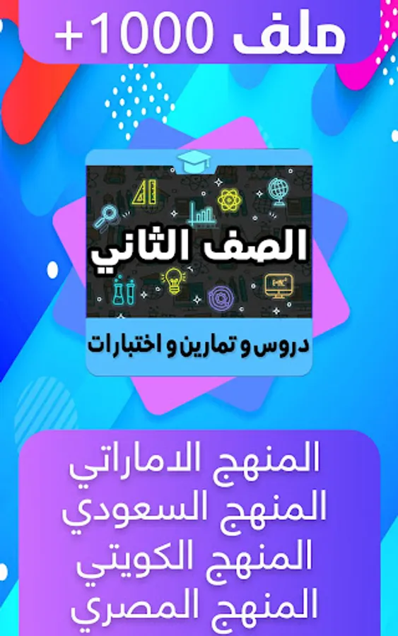 A comprehensive application for the second grade that contains a large collection of files, lessons, and exercises that enrich you in your educational path for ease of use and contains all materials in the UAE curriculum, Kuwait curriculum, Saudi curriculum and Egyptian curriculum.