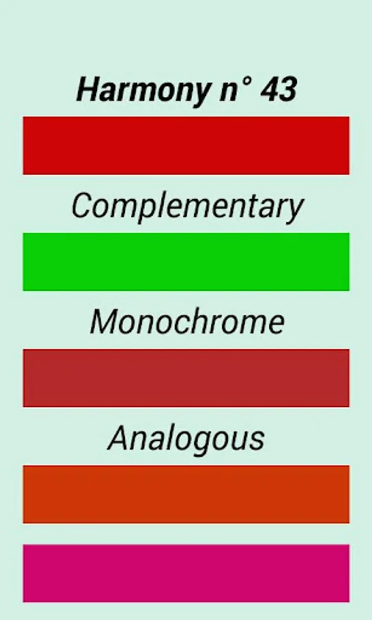 4 in Harmonies section you will find for each color its complementary, monochromatic and analogous.