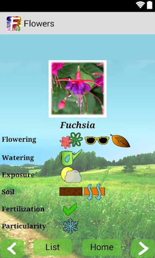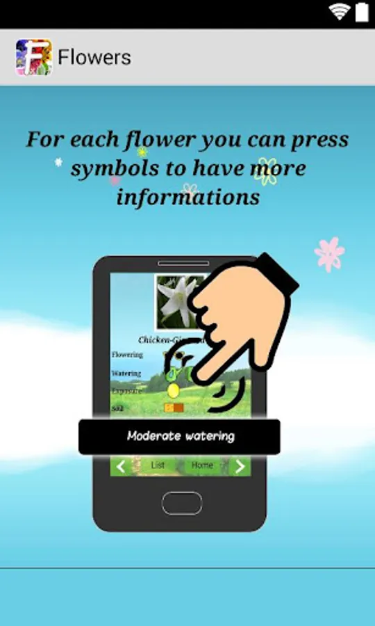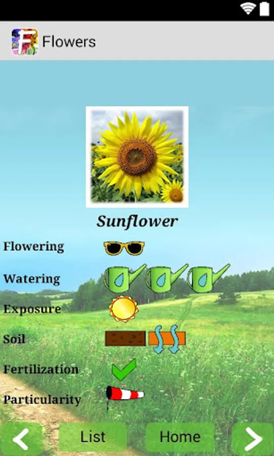 Each flowering plant has its own requirements. Discover informations about your favourite flowers and flowers you have never seen before. This is a simple app and in few minutes you will know basics to let your own flower grow up and live happily!