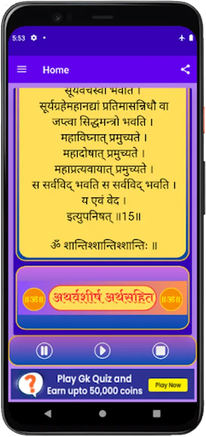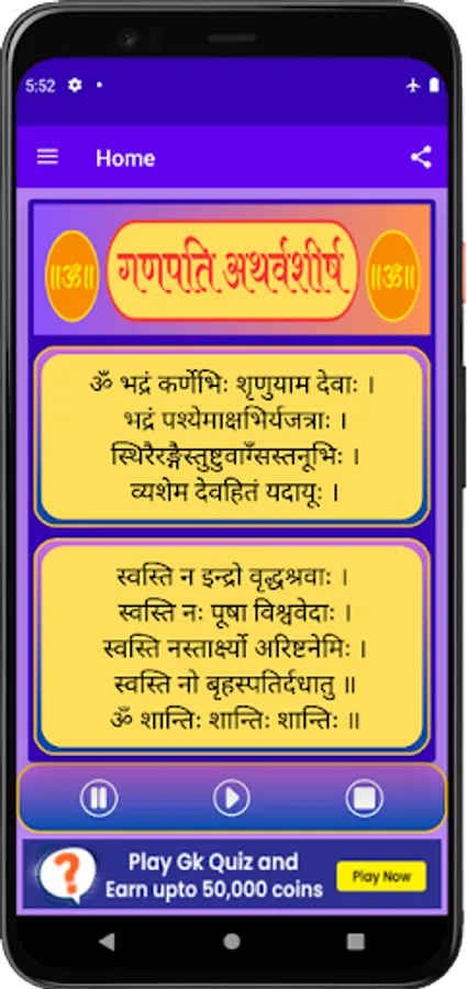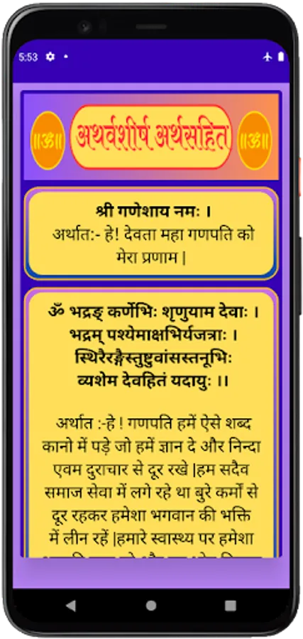 यह एक परिपूर्ण ऍप है जिसमे आप सुनने के साथ साथ पढ़ भी सकते हो। इस ऍप को हर रोज सुने और गणेश जी की कृपा अपने उप्पर बनाये रखे। गणपति अथर्वशीर्ष (Ganpati atharvashirsha with Lyrics) ऍप में हमने हर श्लोक का अर्थ भी दिया हुआ है जो आपको को आसानी से श्लोक समझने में सहायता करेगा।