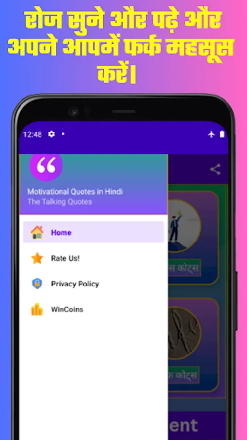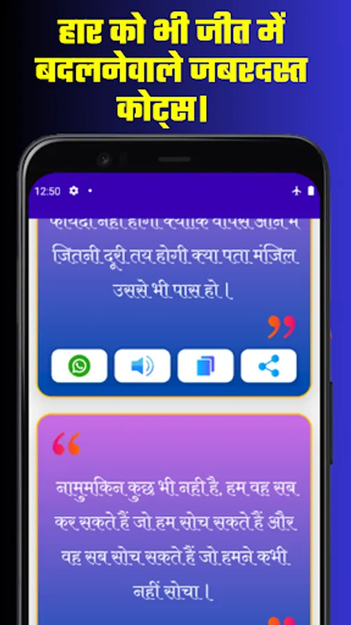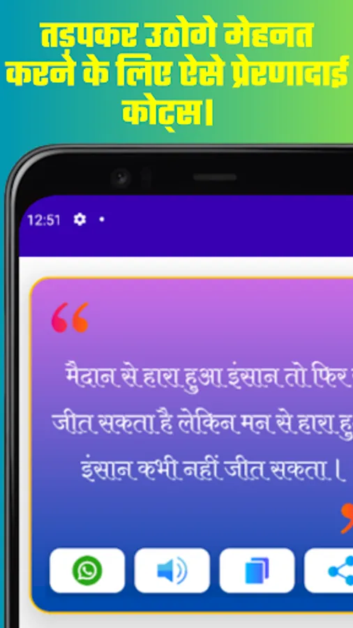 इस ऍप में हमे लगबघ सारे मोटिवेशनल कोट्स देने का प्रयास किया है। जैसे की,