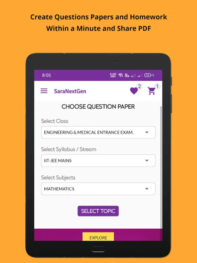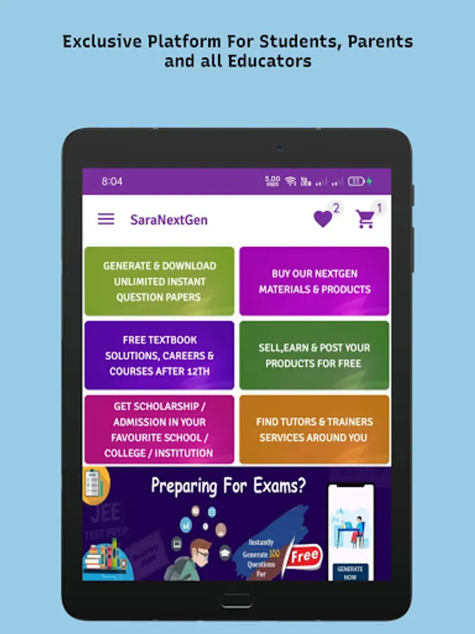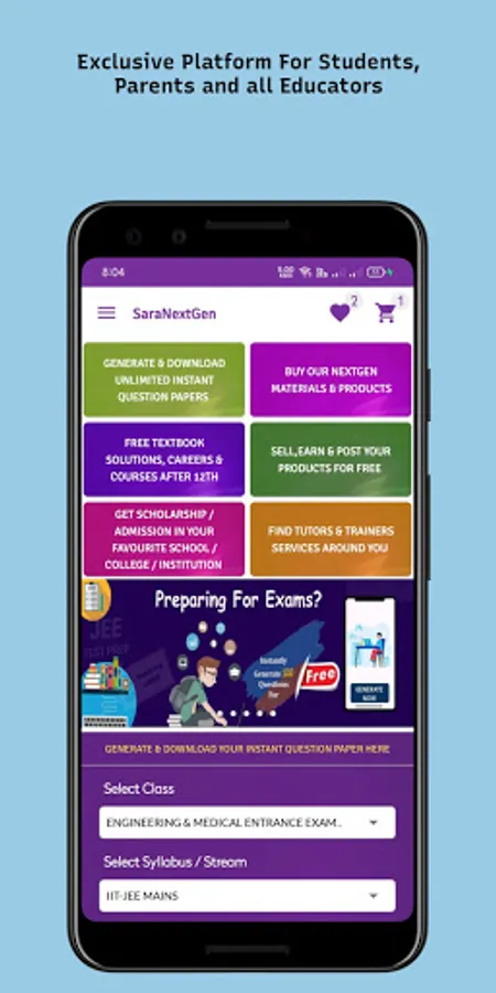 SaraNextGen Study App - MCQ and Subjective Test Generator App for Teachers, Students CBSE Class 10 and 12, JEE NEET OLYMPIAD Exams - Test Generation in PDF Question Papers. New Users get 100 Questions for Free in PDF, Share & Download Unlimited Question papers in PDF within 30 Seconds and Share PDF for all the major Competitive Exams.