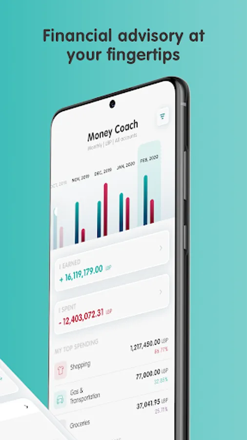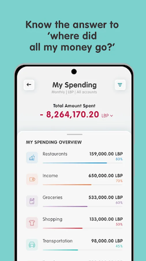 · Access “Spendings” from the bottom menu of the App and check your entire spending per month split by category