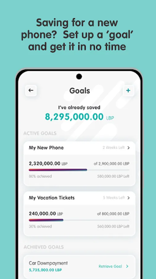 · Tap the “Goals” section from the home screen or simply access “Goals” from the “More” menu and start creating your first goal