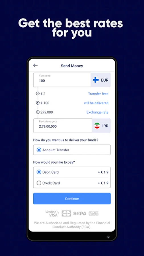 Add amount- Fill in the details required to send money with transparent rates and fees.