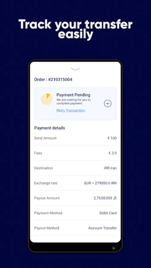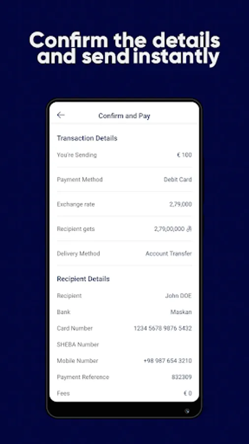 Enter recipient information-To whom the money is transferred residing in Iranian, UAE and Albania markets.