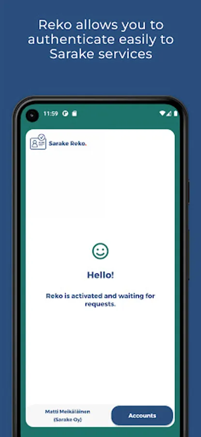 Reko App always displays the service that is making the authentication request, for example, Sarake Sign, as well as the nature of the request. If you are unsure about a request that you have received, do not authenticate.