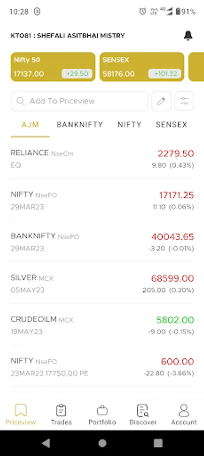 • Add up to 100 scrips per PriceView.