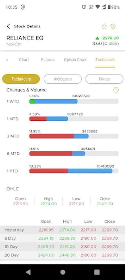 • View OHCL (Open High Close Low) data in Technical Sections