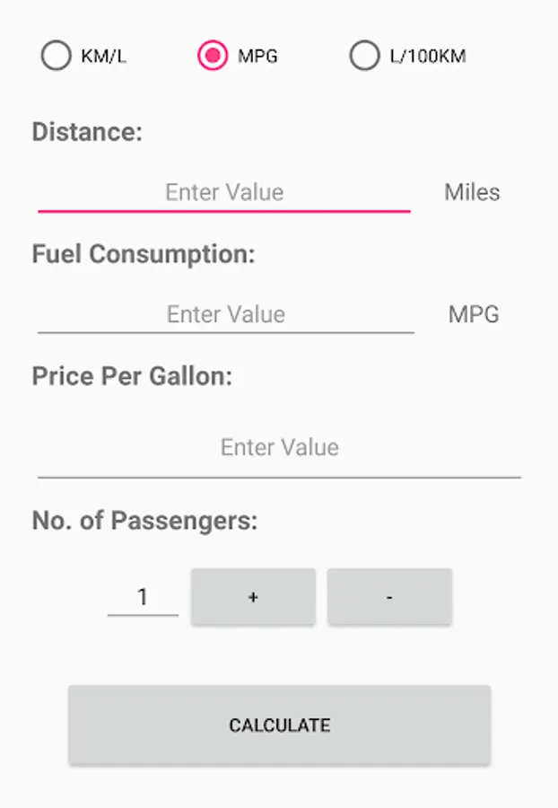 Works with Miles per Gallon (MPG) (Imperial and US) and Kilometers per Litre (KM/L) and Litres per 100 Kilometers.