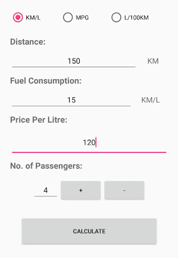 A simple and easy fuel cost calculator for calculating the cost when the distance and the fuel consumption.