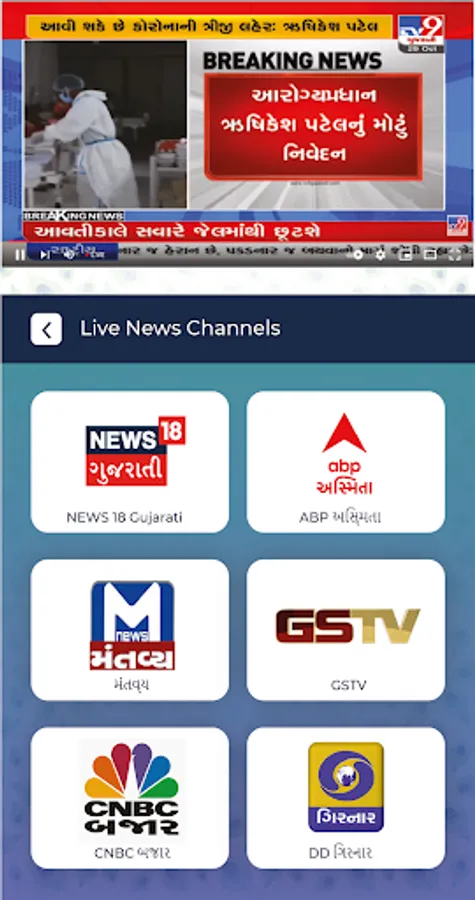 👌Best Gujarati news app with all live channels 24X7. Gujarati news channles like Zee 24 Kalak, TV9 Gujarati, ABP Asmita, News 18 Gujarati, CNBC Bazaar, Mantavya News Gujarati, VTV, GSTV, Sandesh News, VR Live, DD Girnar and more.