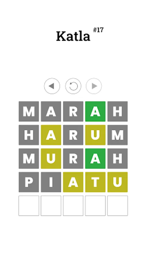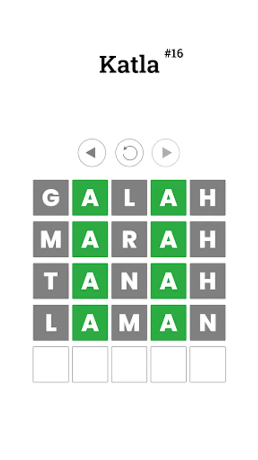 Katla is an Indonesian Wordle. Players will guess the word according to the KBBI. By playing this, it is hoped that players can increase their vocabulary. The word consists of 5 letters, after the player guesses a letter will appear which will be a clue for the next guess.