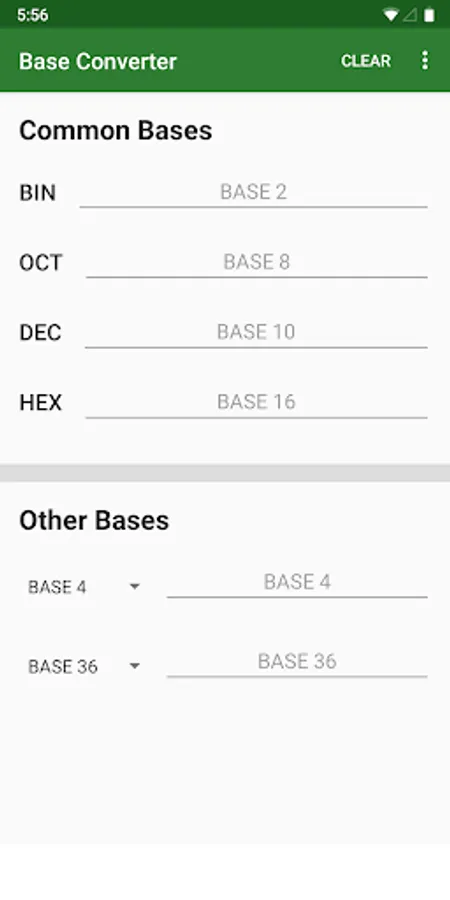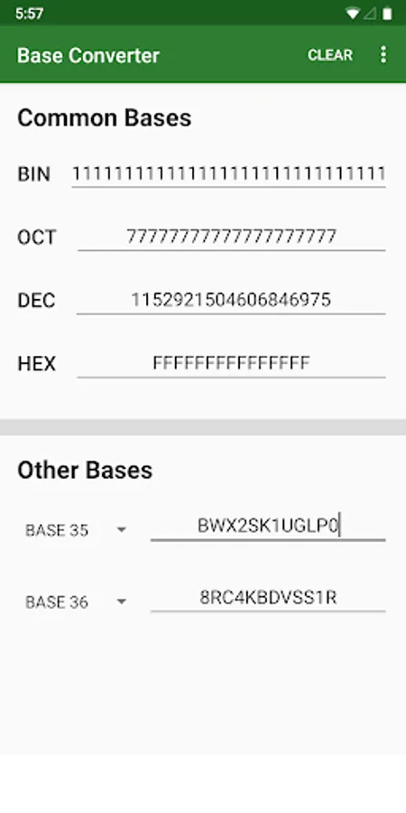 - Tap a dropdown in the Other Bases section to pick a custom base from 2 to 36. The number in all text fields will change accordingly.