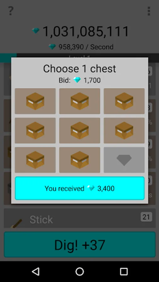• Gain as many diamonds as you can by clicking on a Dig button as fast as you can.
