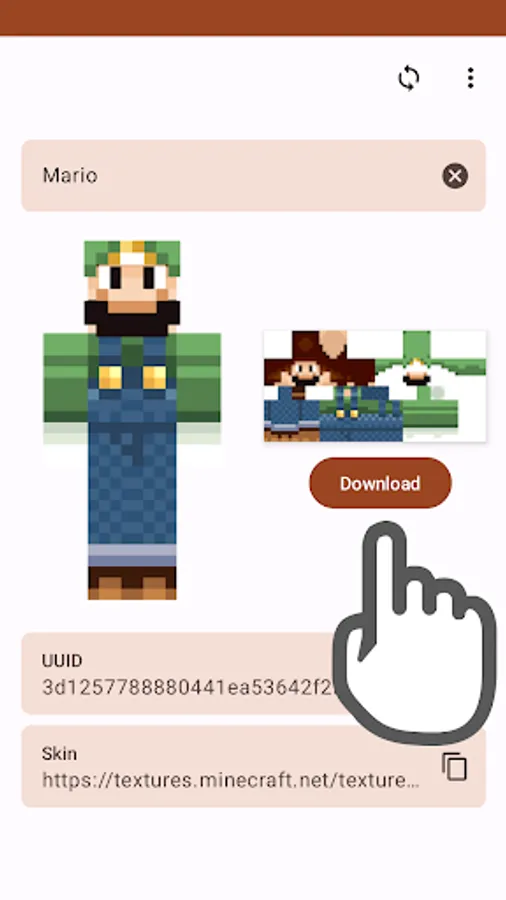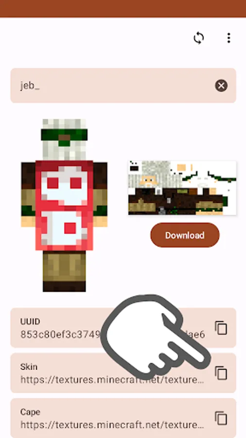 - Copy skin, and cape links for sharing to friends, browser access or later use.