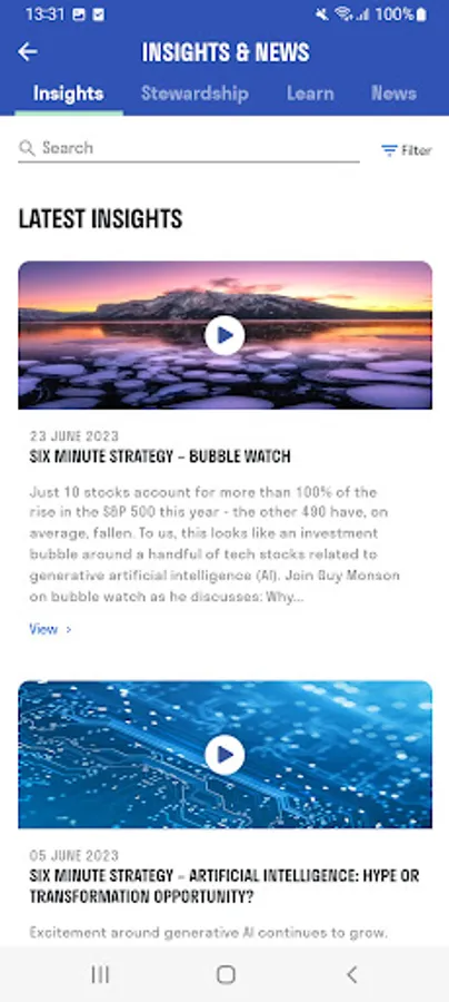 Keep informed of the latest insights, videos and training from Sarasin & Partners’ investment teams, and be notified of important news – all delivered via a secure format within the portal.