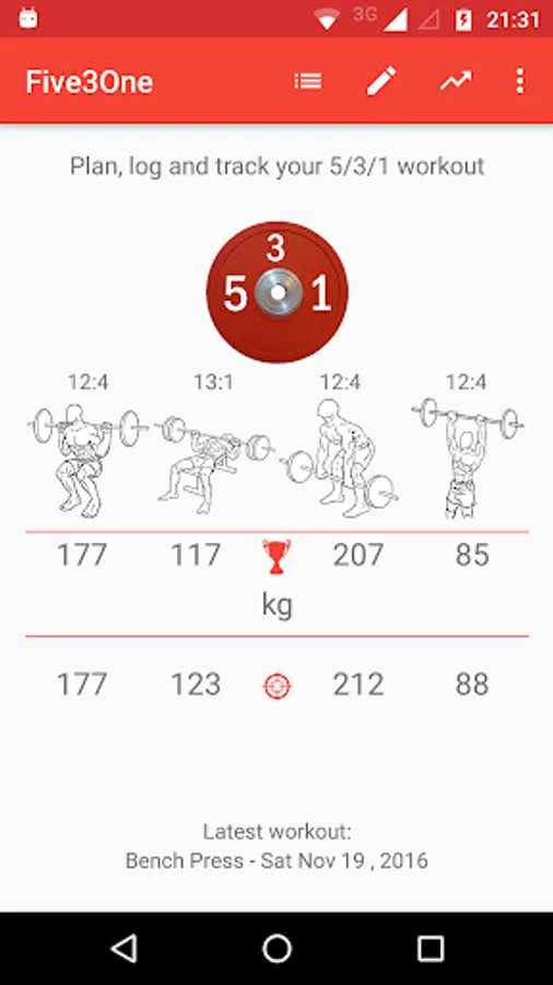 This app generates the 5 3 1 workout program based on your current lifts.