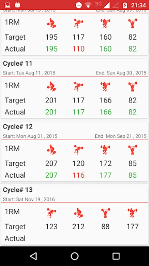 ★ Cycles overview with estimated and achieved one rep max