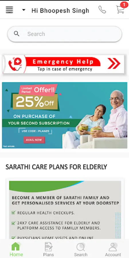 Sarathi Elder care plans are specially designed for children living away from their parents or grandparents seeking regular care as well as elder people living alone.