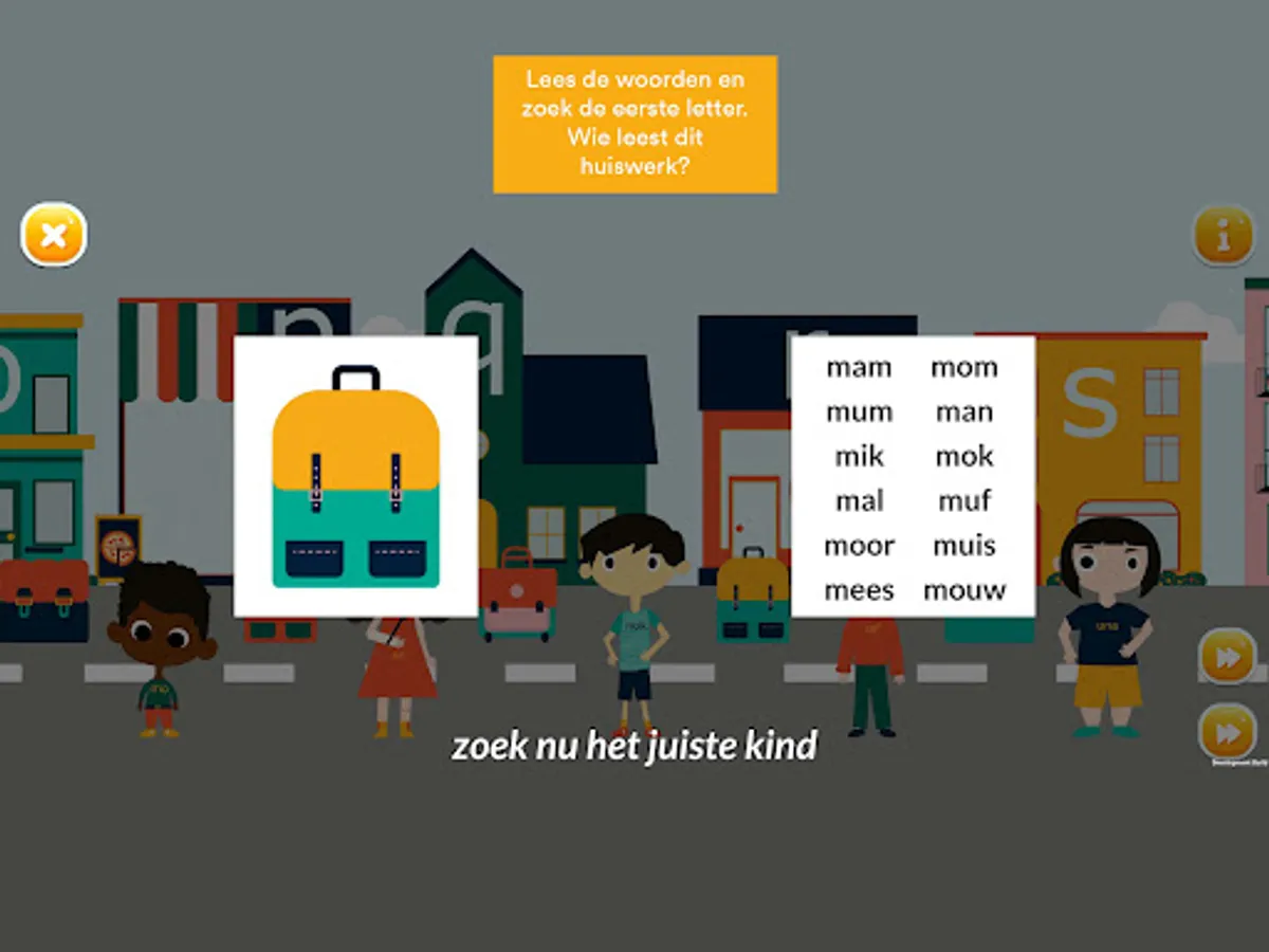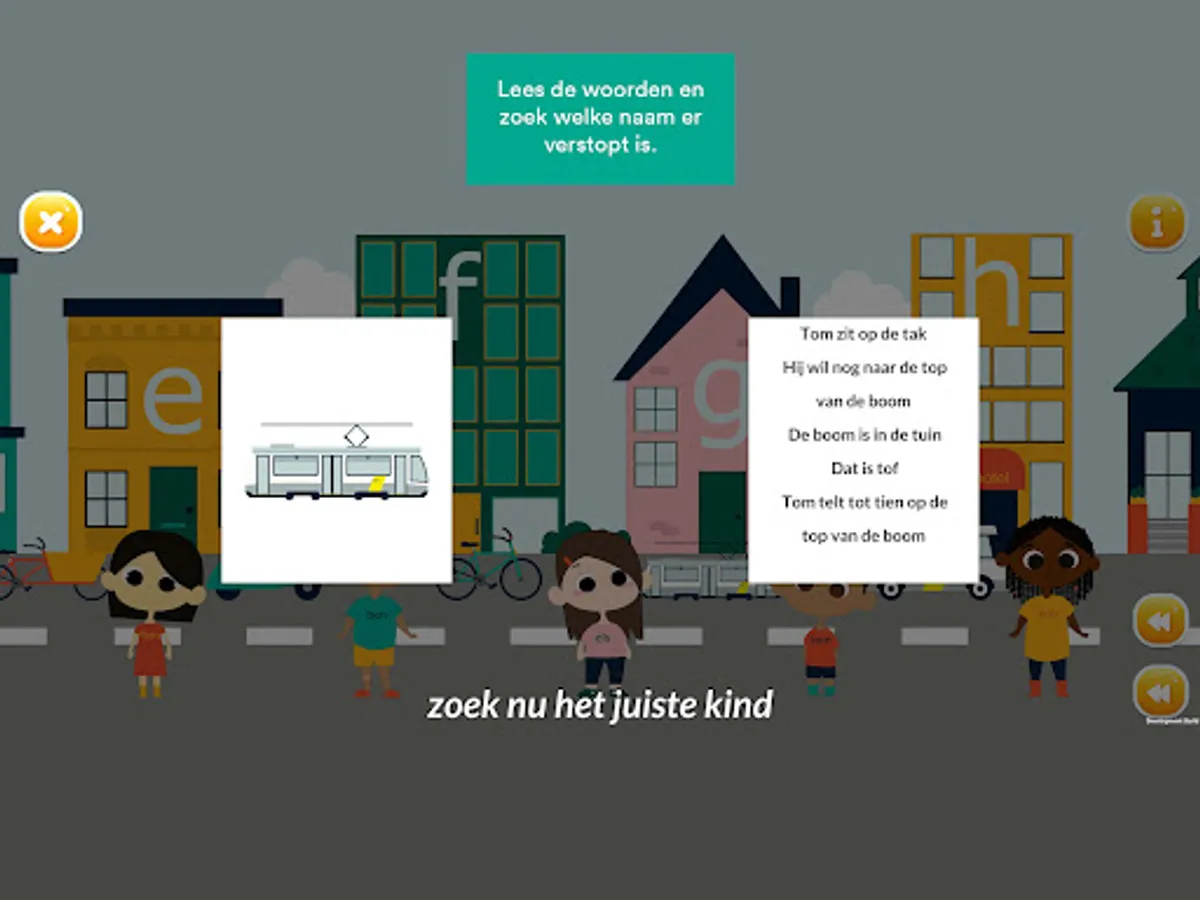 Are you good at reading words? Then you can now start reading sentences. In level 2 you look for the right vehicles of the children. Open the vehicle and read the sentences. The child's name is hidden in these sentences. Can you find which name is hidden?