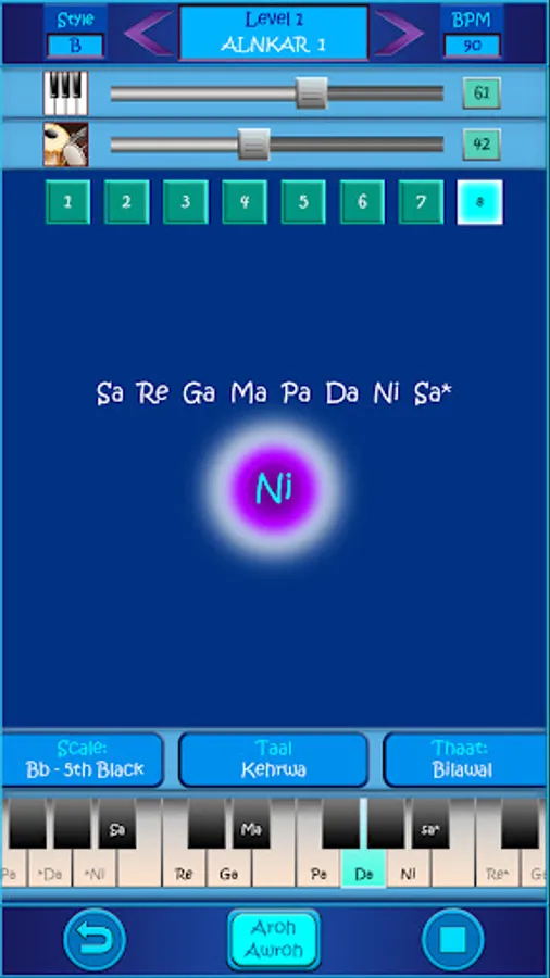 This is a music practice app. You can practice and improve your voice quality specially singing. There are different patterns of music notes to sing with. These patterns are known as 'ALNKARS' in Indian classical music. There is a section called EAR TRAINING where you can train your Ear to listening to the music notes and patterns. You can practice with different Taalas (Rhythms) Like: Kehrwa ( 8 Beat ), Dadra (6 Beats), Roopak ( 7 Beats ), Deepchandi (14 Beats), Jhapp (10 Beats ) and Teentaal (16 Beats ) etc. At present we have 6 Alankaars and three Taals (Kewra, Dadra and Roopak ) to practice,
