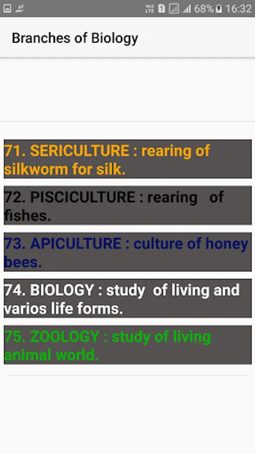 A short descriptikn about cultures like Apiculture, pisciculture, Sericulture, Silviculture, Floriculture, Olericulture, and the various branches of biology like Acarology,