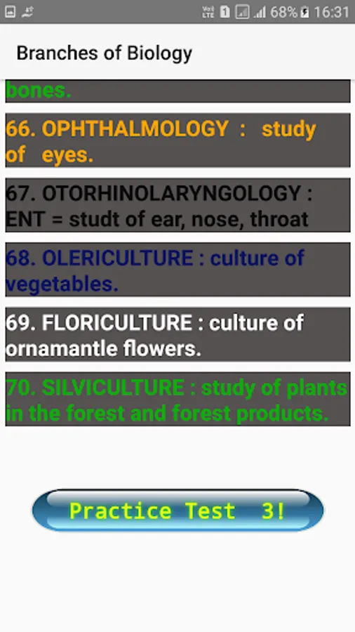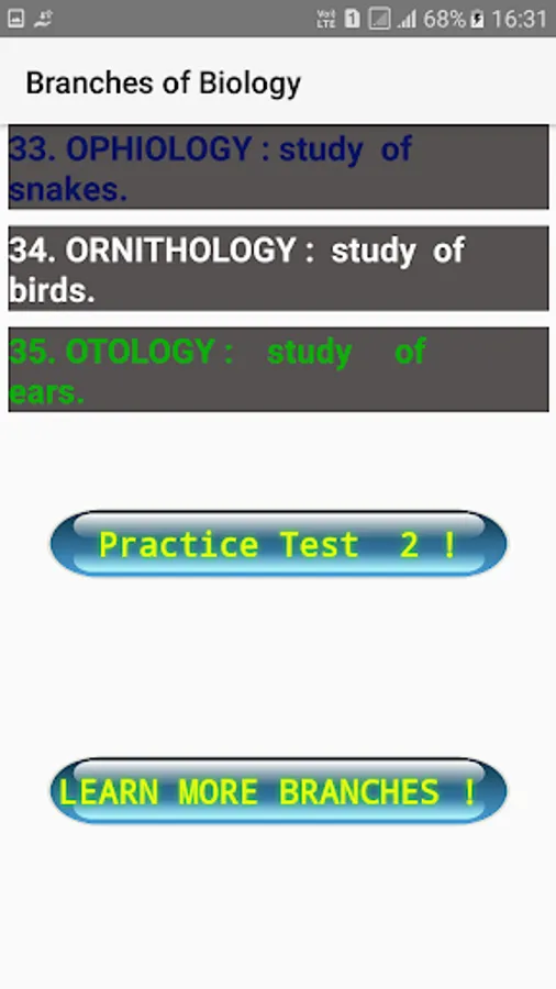 Acarology anatomy Angiology arthropod arthrology cardiology cetology Controller ji conchology cryobiology dactylography demography Dermatology ethnology etiology etiology gerontology epidemiology Hematology helminthology hepatology herpetology ichthyology Kayala geology limnology malacology master logi mycology Marine Ecology oncology Ornithology Ornithology otology serology trichology pomology dendrology parazoology Dendrochronology biometrics radiobiology actinobiology Eugenics euthenics euphenics Karyology Pharmacology toxicology Paediatrics orthopaedics ophthalmology otorhinolaryngology