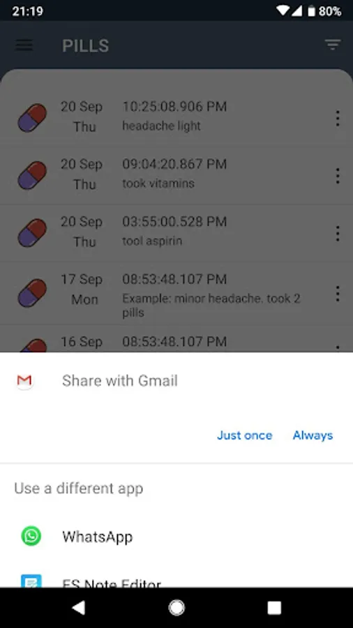 - Medication: record time of taking medication, pills + note dozes and etc.