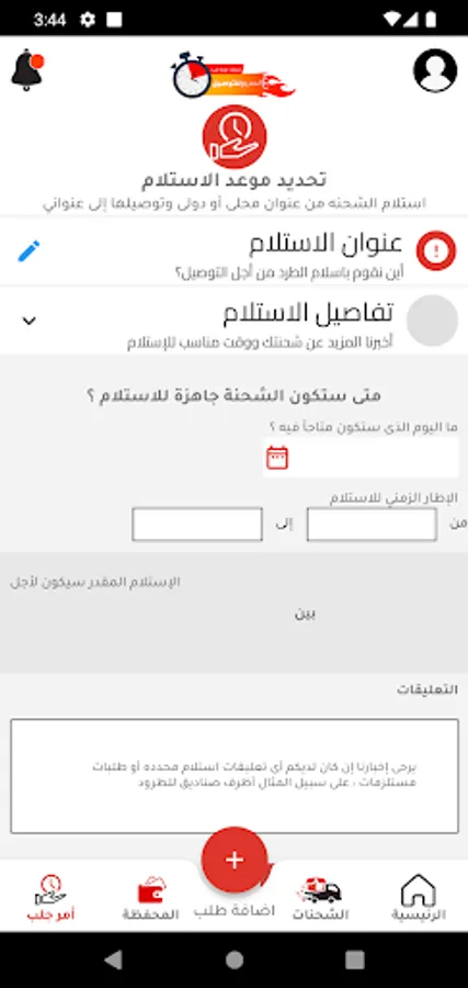 تطبيق خاص للعميل لمتابعة الشحنات و المعلومات المالية و إضافة الشحنات بكل سهولة و يسر