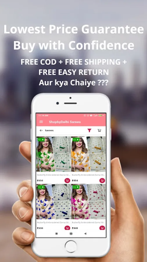 Sarees Online Shopping App have 50k+ Products which are available with Free COD and Shipping across India. You have to simply choose your desire Saree and place the order with your address.
