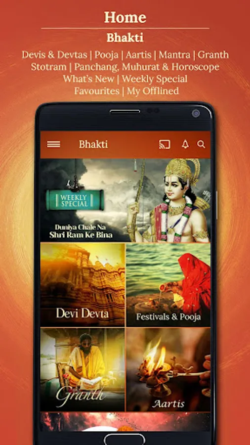Our content collection features bhajans, mantras, aartis sung by Anup Jalota, Anuradha Paudwal, Lata Mangeshkar, Suresh Wadkar, Jagjit Singh & others.