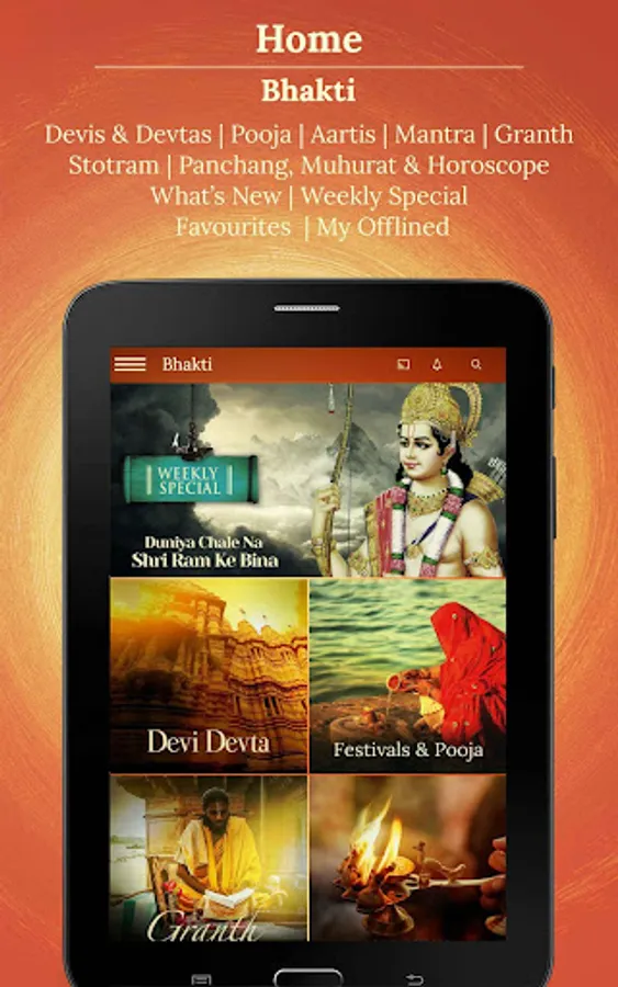 - Offline both audio & videos to listen to your favourite Bhajans, Aartis, Mantras, Stotram, granth or watch videos even without being connected to the internet