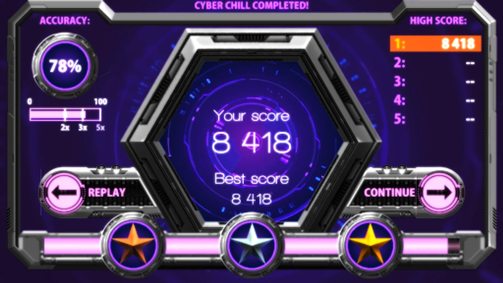 The quicker you hit the shapes, the more points you gain. Misses reduce your accuracy rating, which effects your overall score.