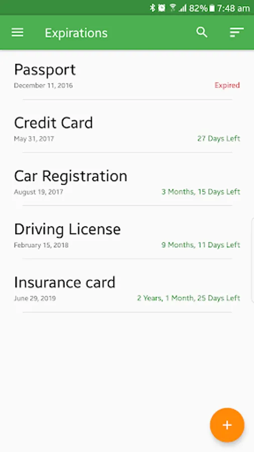 Simply enter your important expiry dates, and Expirations will warn you in good time before they pass.