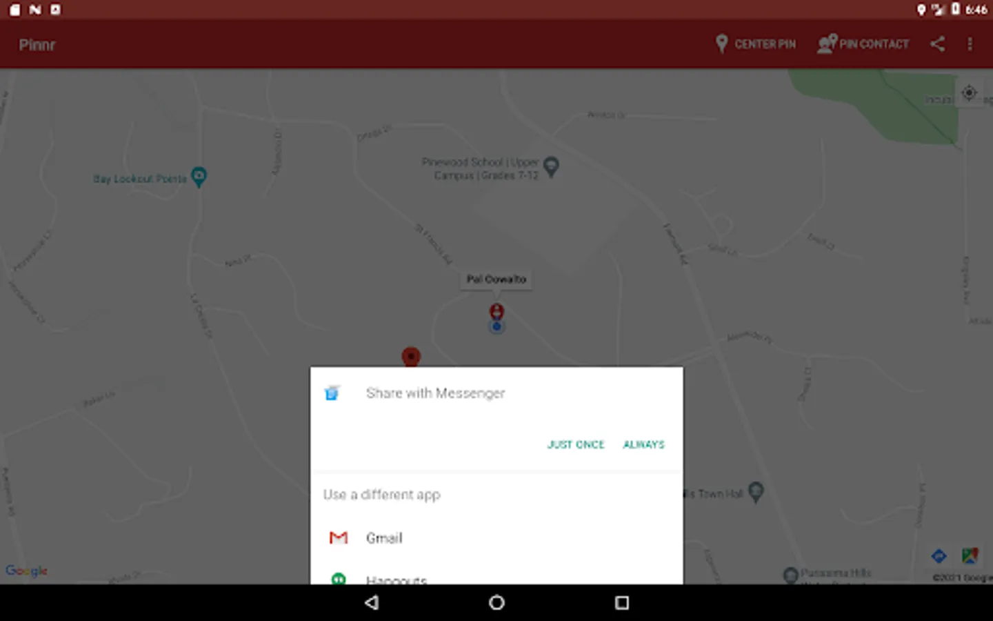 1. Use the Pinnr map to locate the point on the map that you want to tag the contact with