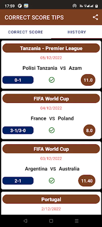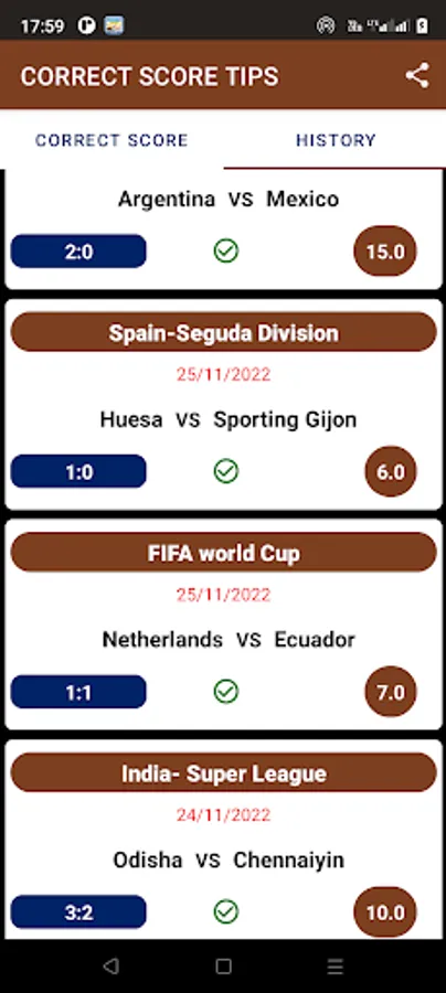 Looking for correct score tips,odds and predictions? We are the home of correct score tips and that is evident in our previous history. This application is the ultimate platform for sport fanatics and betting enthusiasts. We stack the odds in your favor literally. Our main aim is to give you the most dependable match predictions to ensure that your slip is sure winner.