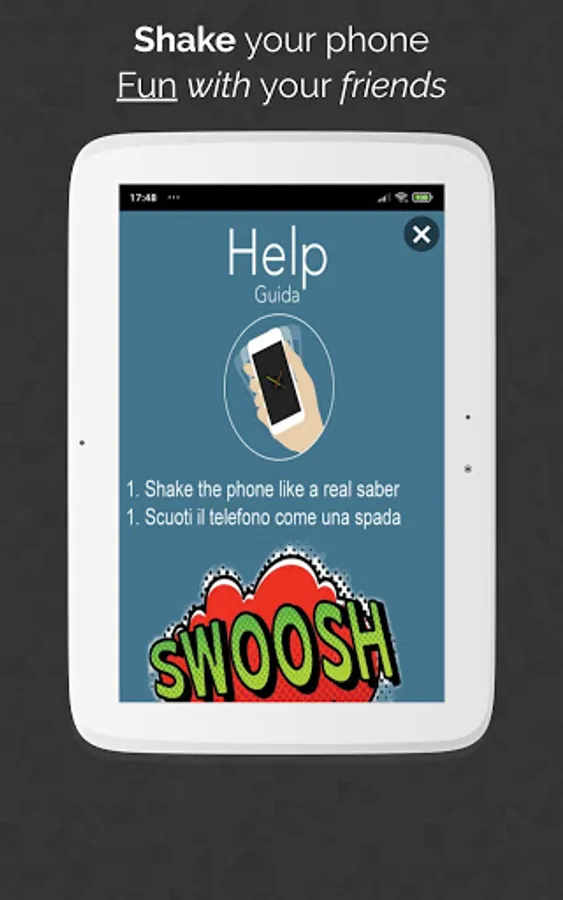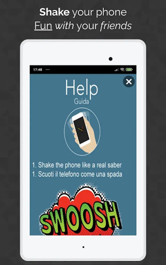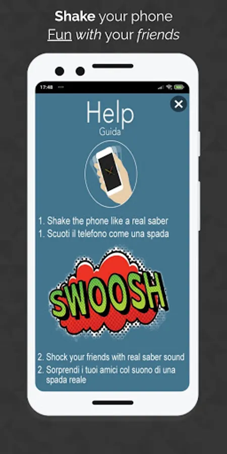 Move the phone like a sword to produce a space effect sound. Use your phone as a sword and choose your side with the new virtual saber!