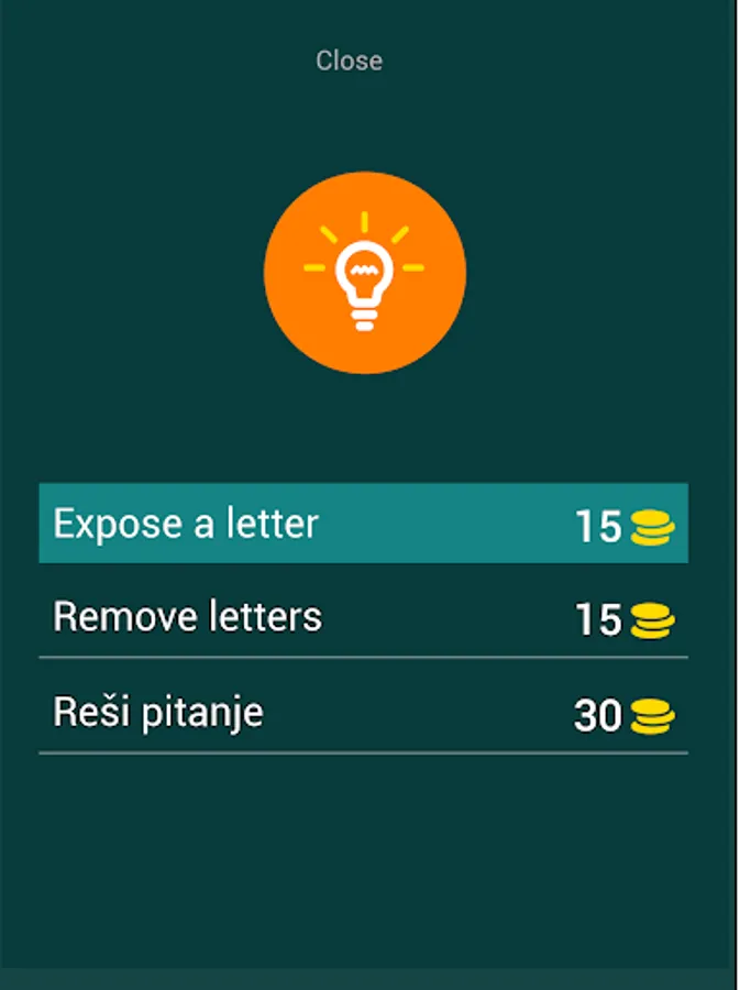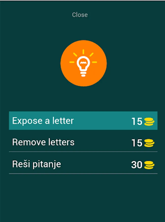 If you find the correct answer, go to the next level with new pictures. However, if you're level, you have three types of hints available to help you out. The first hint will reveal the letter of the word. Others will remove all letters from the option except the letters that make up the word. The last one will solve that puzzle and you can move on to the next level. Note that using these hints will cost you coins earned in previous puzzles. You have multiple options to earn these coins, which include watching videos, tweeting our game, or sharing on different platforms.