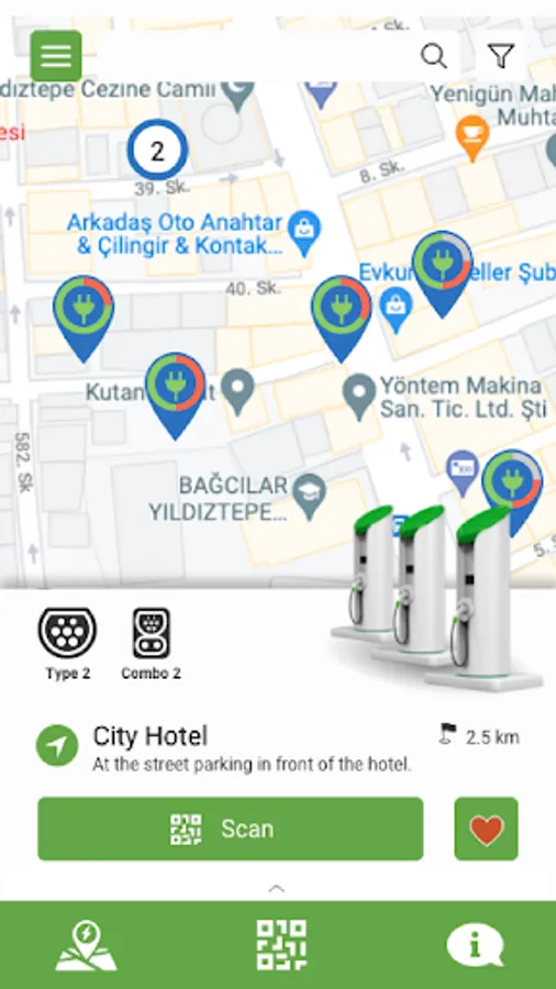 1. View Charging Stations: You can view nearby charging stations, check their availability and create a route.