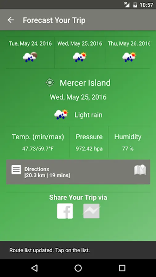 *v1.5: We have named this release as "Forecast of Complete Trip - beta", which would help you plan a trip better with the forecast details of all the places in your trip route.