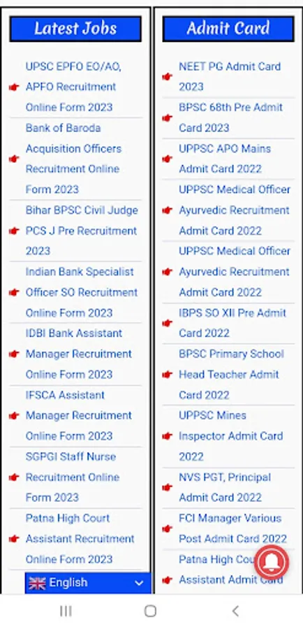 This app provides all job related information like latest jobs,admit card,result,answer key,syllabus etc