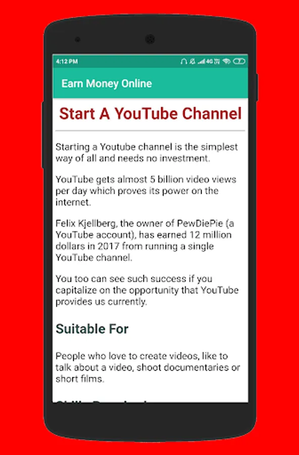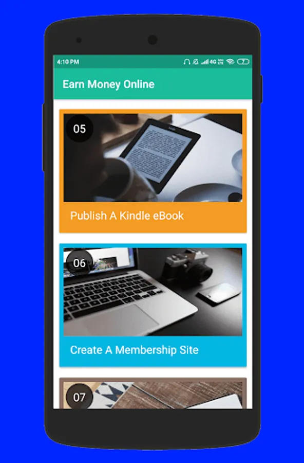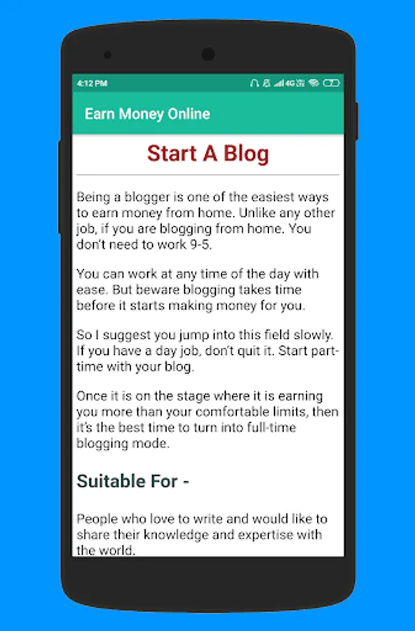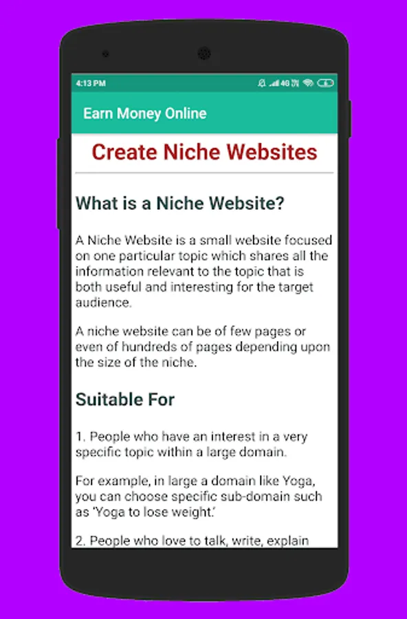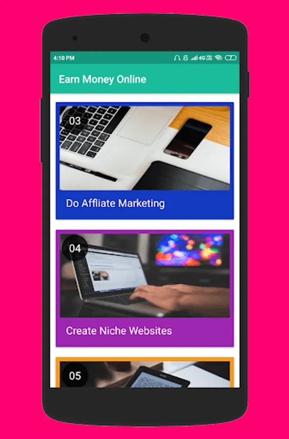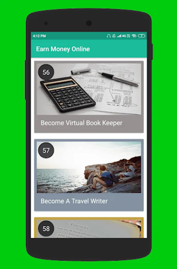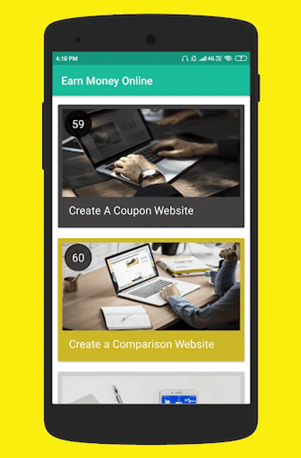 60 Ways To Earn Extra Money. This app has a collection of 60 legitimate ideas to earn money online.