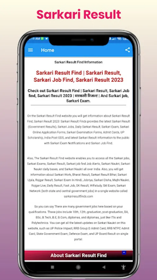 Sarkari Result Find Android App is Not Any Government Entity ,It is Only For Government Jobs Update,Admit Card Updates etc.