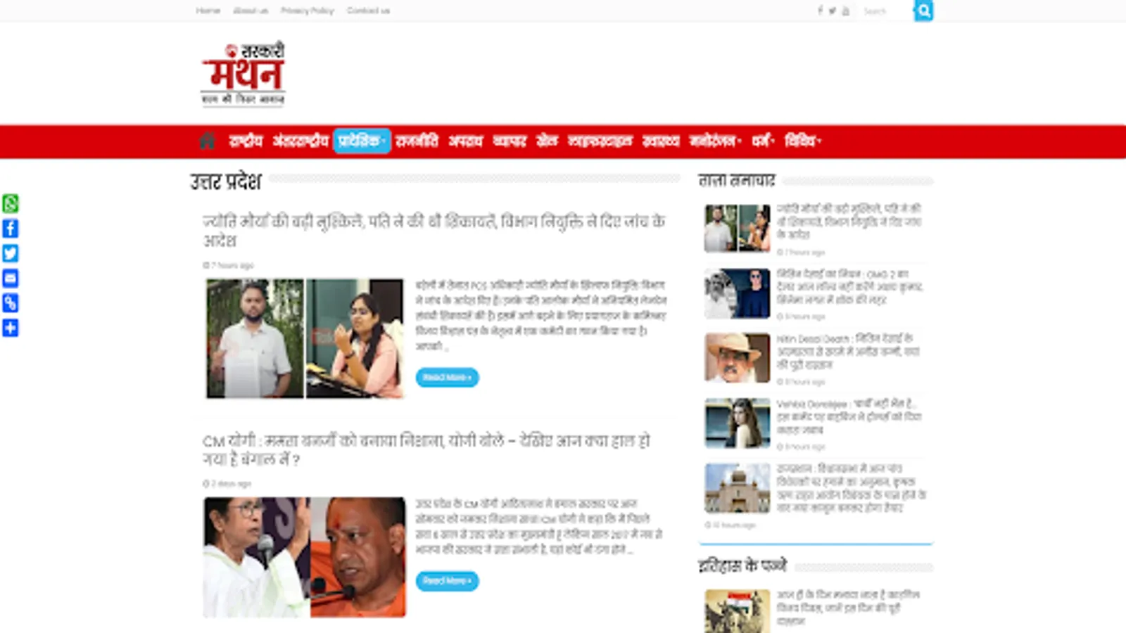 Sarkari Manthan is an unbiased Hindi news portal started by Editor Anoop Kumar Mishra. As it seems to you from its name, it brainstorms all the activities happening in the government, political, country, world, entertainment and society and gives accurate, unbiased news. Its team comprises of the most experienced and respected journalists and writers with vast experience in journalism.