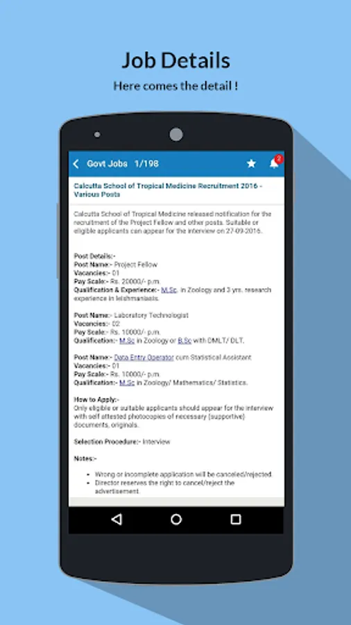 Disclaimer: Sarkari Naukri Updates is a service app, managed by 2mi Technologies (A Non-Governmental Company). Its primary focus is to update the latest govt jobs of various govt organizations under one roof for the ease of job aspirants.