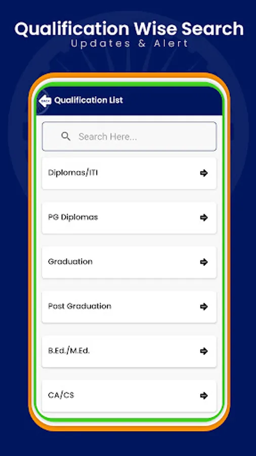 This qualification tab makes all the qualifications known Like 8th pass Job, 10th pass Job, 12th pass Job, Diploma Job, Engineers Job, Graduate Job, Post Graduates Job, B.Ed, Job, BTech / MTech Job, CA / CS Job, LLB/ LLM Job, MBBS / MD Job.