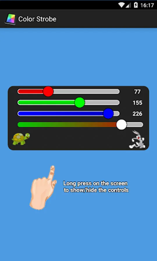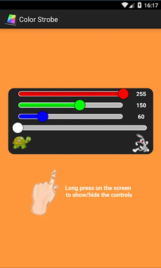 Simply launch the application, choose your color and frequency and it will start strobing.
