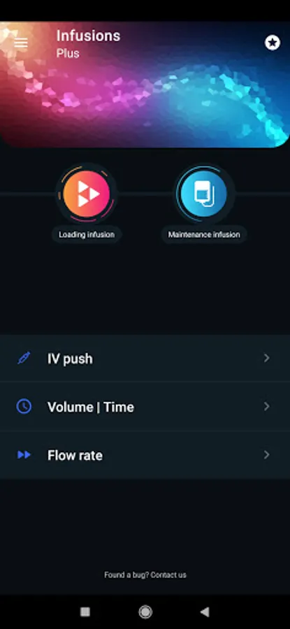 • Infusion rate — Enter infusion volume and desired infusion time (min/h) to get infusion rate, drip rate and drop interval.