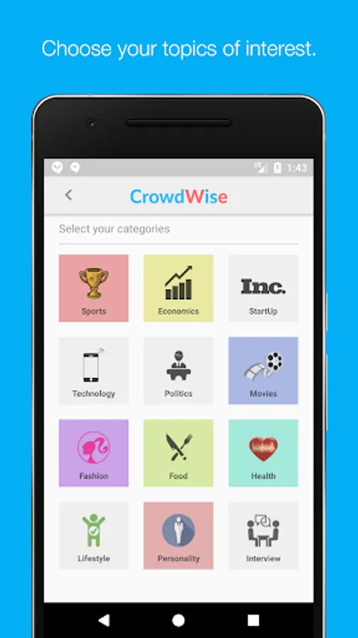 Download the CrowdWise app and start sharing your valued opinions. Find out more about other people, what movies they like, how they deal with health issues, how they handle basic job interview questions and much more. Market research is now, for everyone.